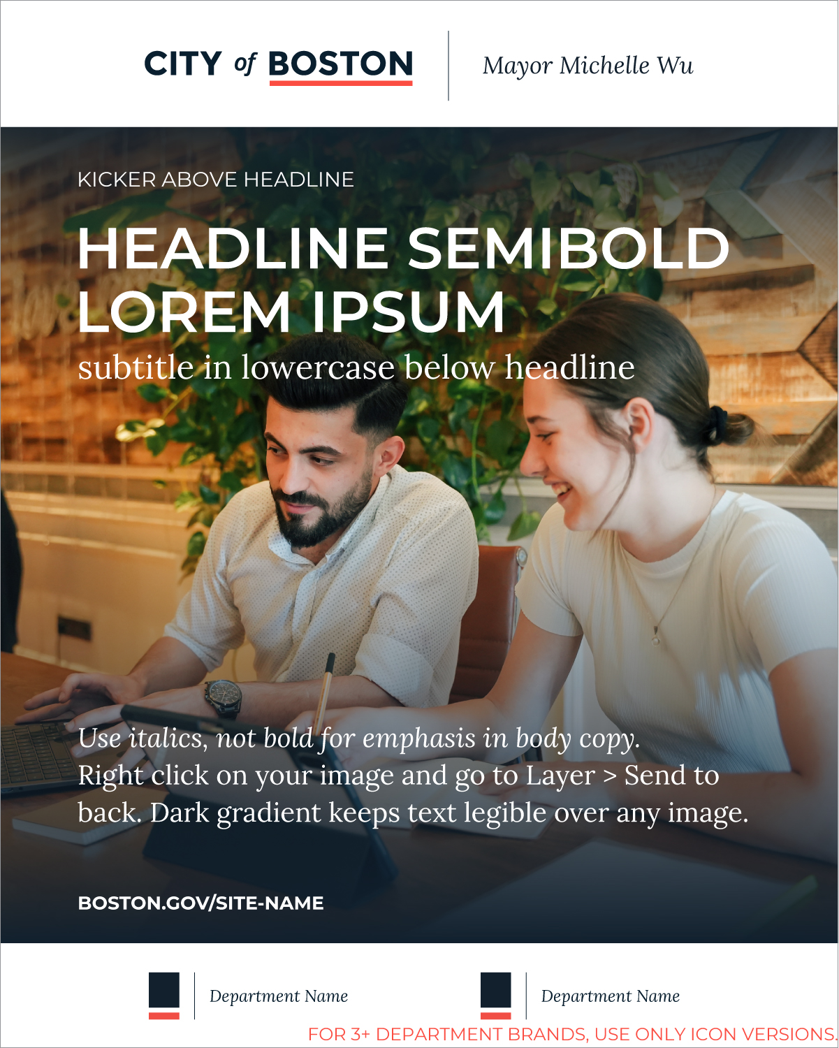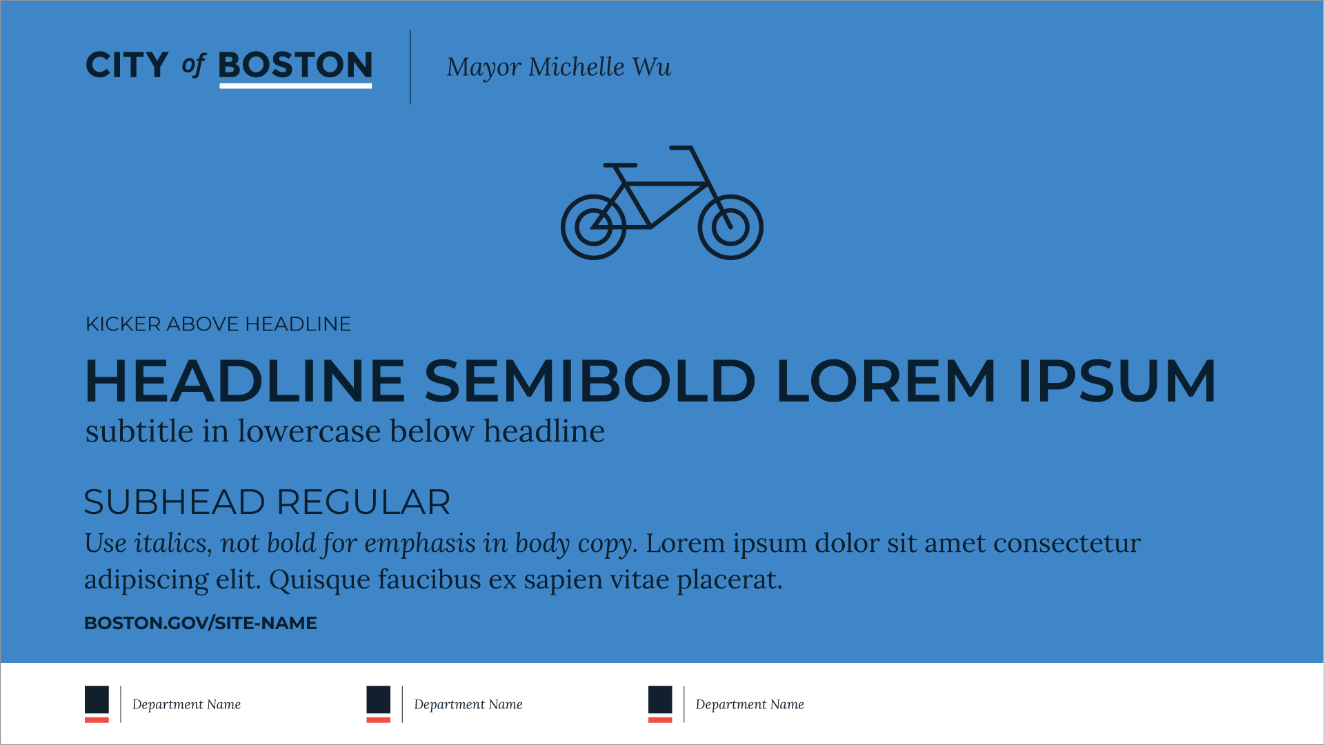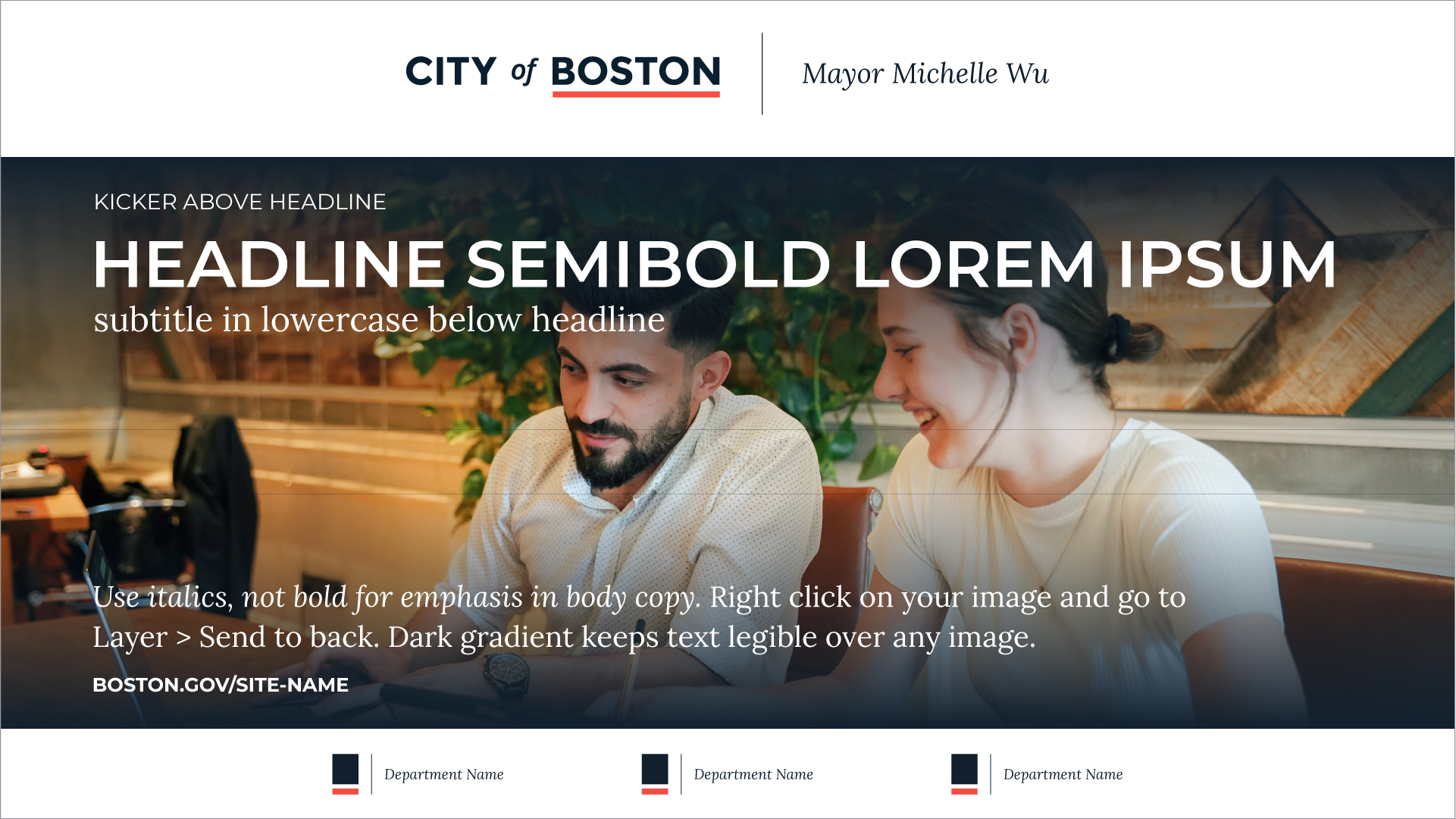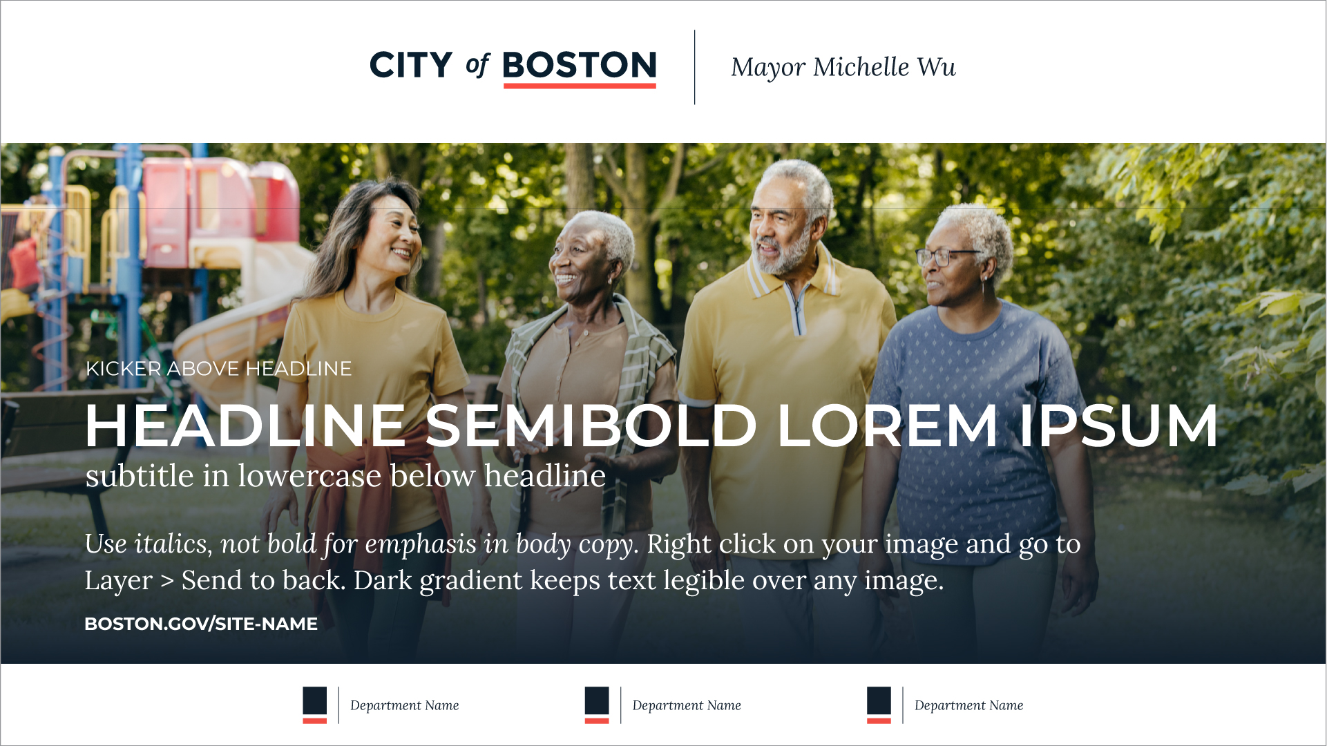 The City of Boston seeks to serve its constituents effectively by operating as a full-service, single entity. Visual communications are key touchpoints for fostering engagement and trust with clients and constituents.