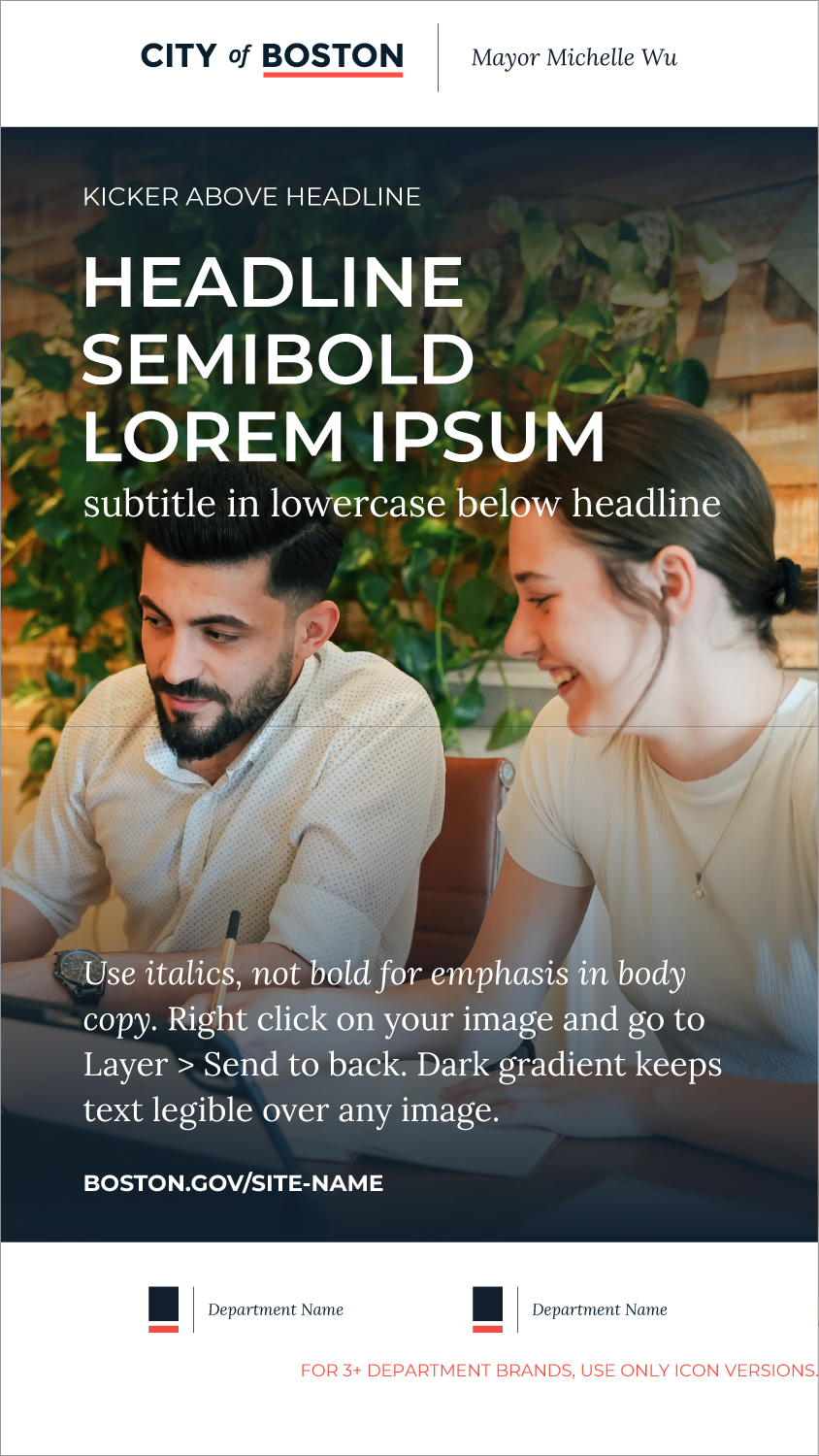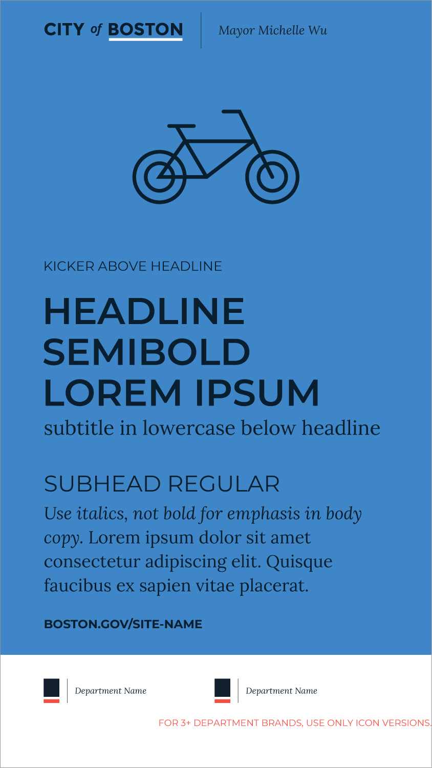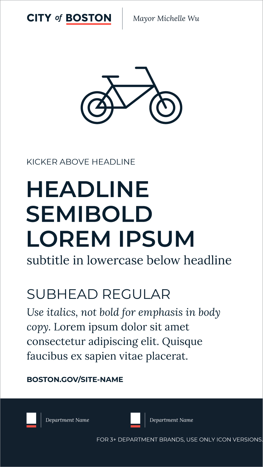 The City of Boston seeks to serve its constituents effectively by operating as a full-service, single entity. Visual communications are key touchpoints for fostering engagement and trust with clients and constituents.