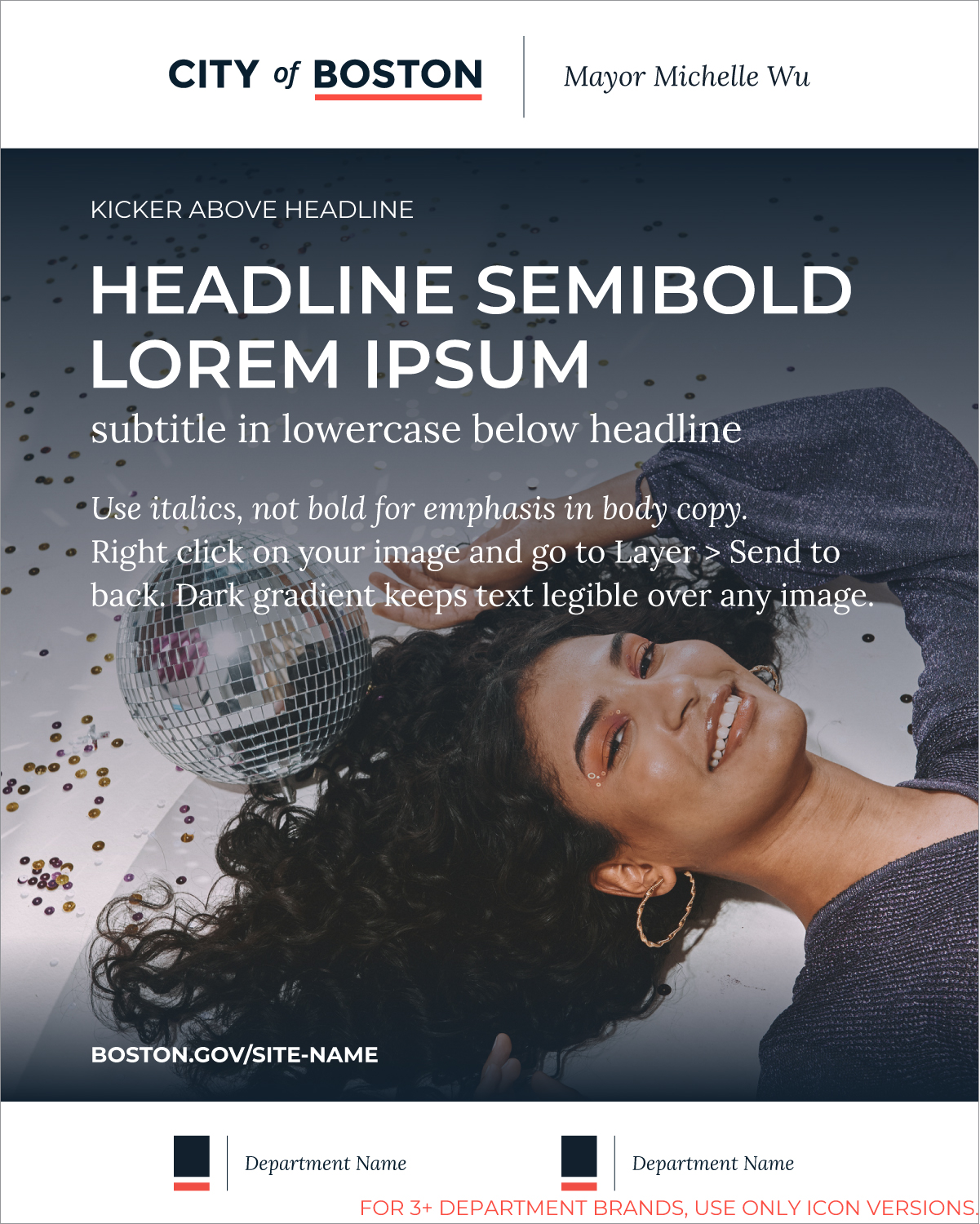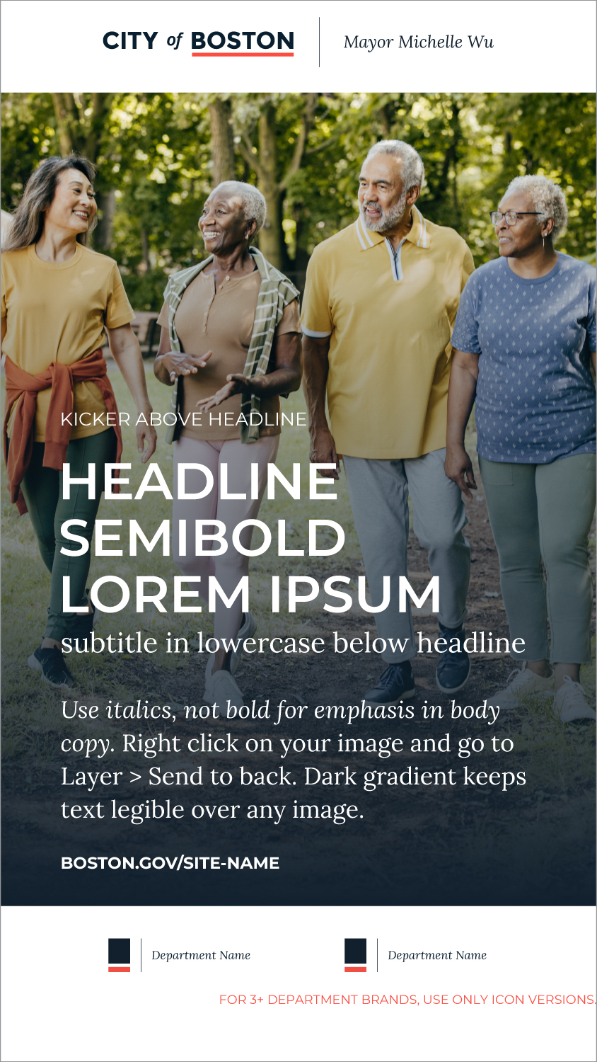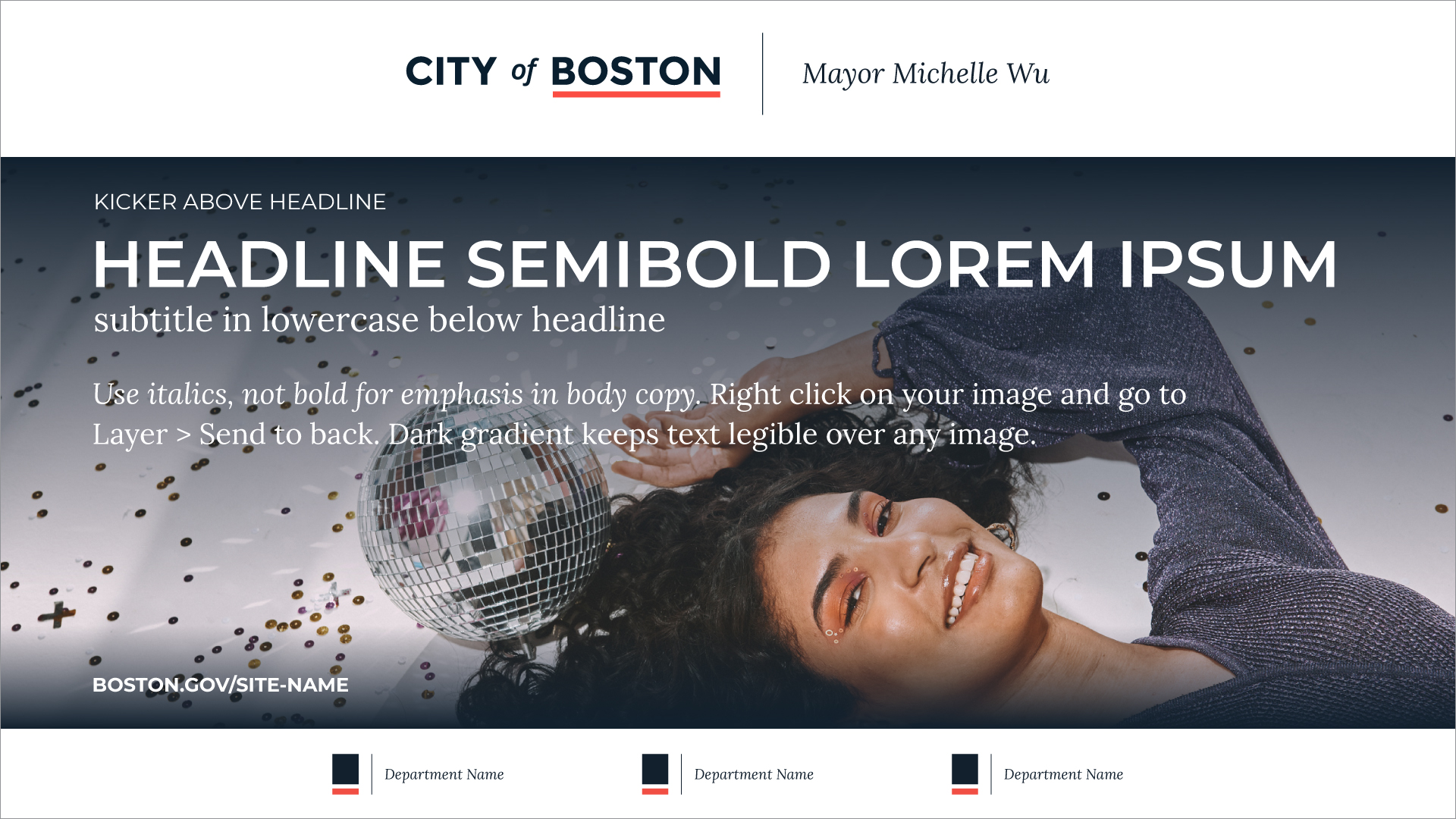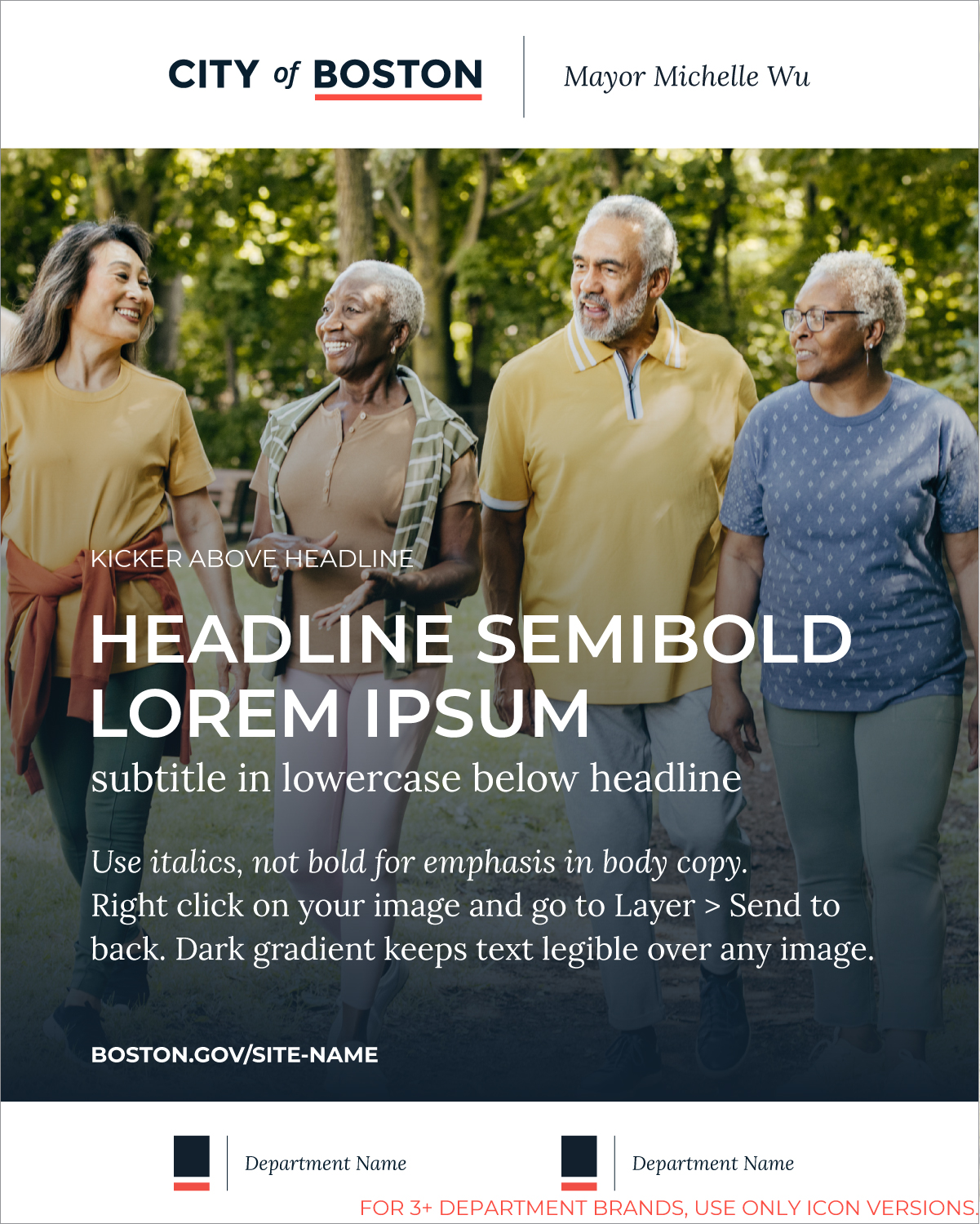 The City of Boston seeks to serve its constituents effectively by operating as a full-service, single entity. Visual communications are key touchpoints for fostering engagement and trust with clients and constituents.