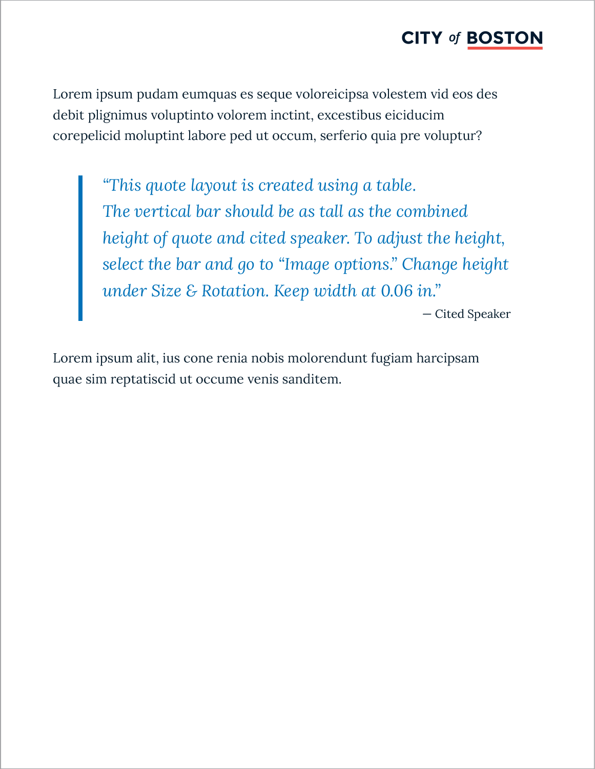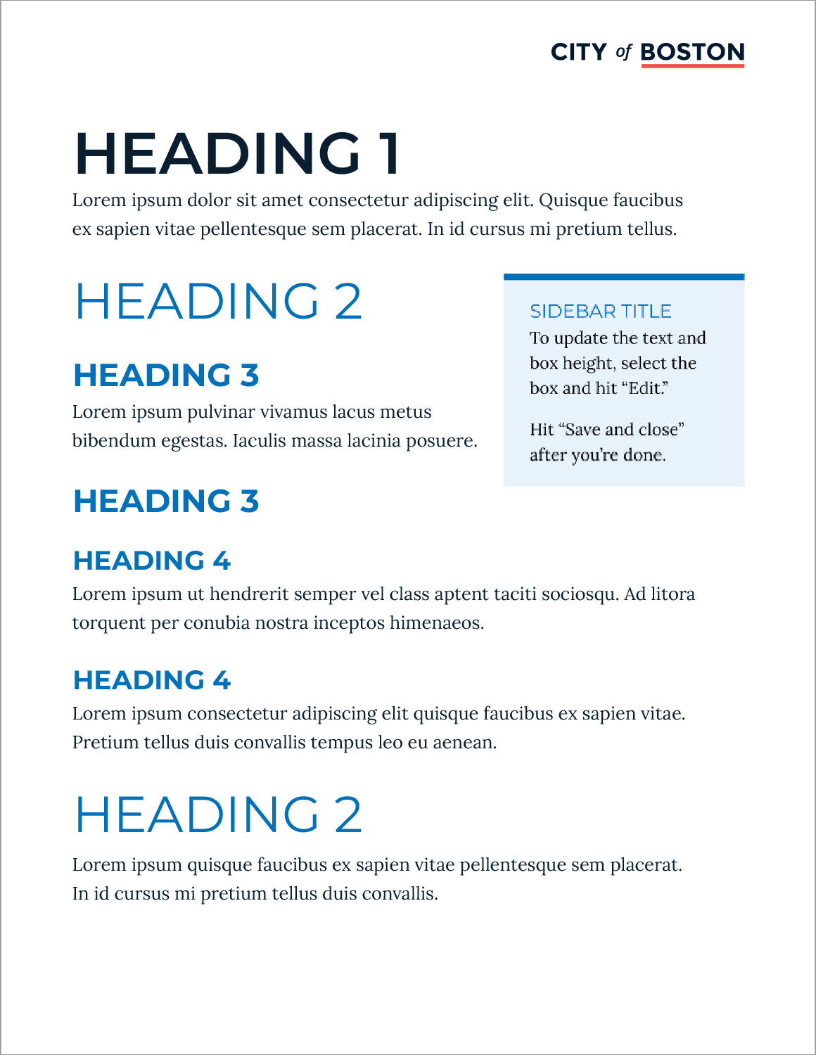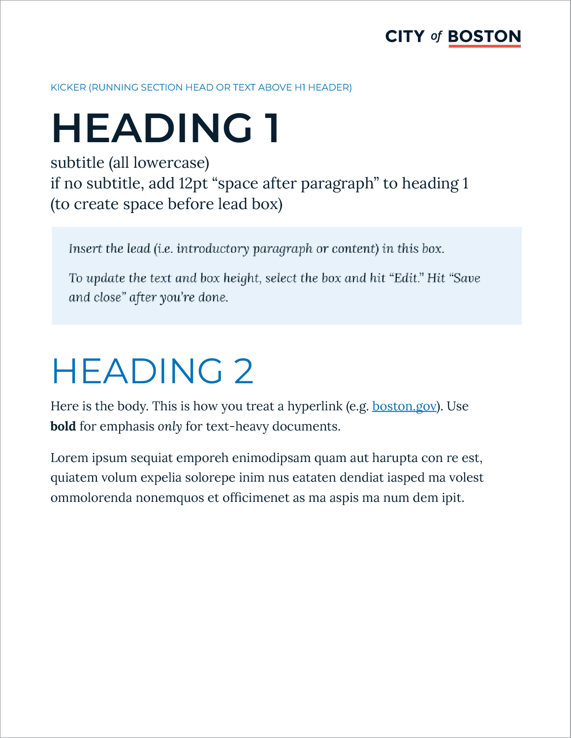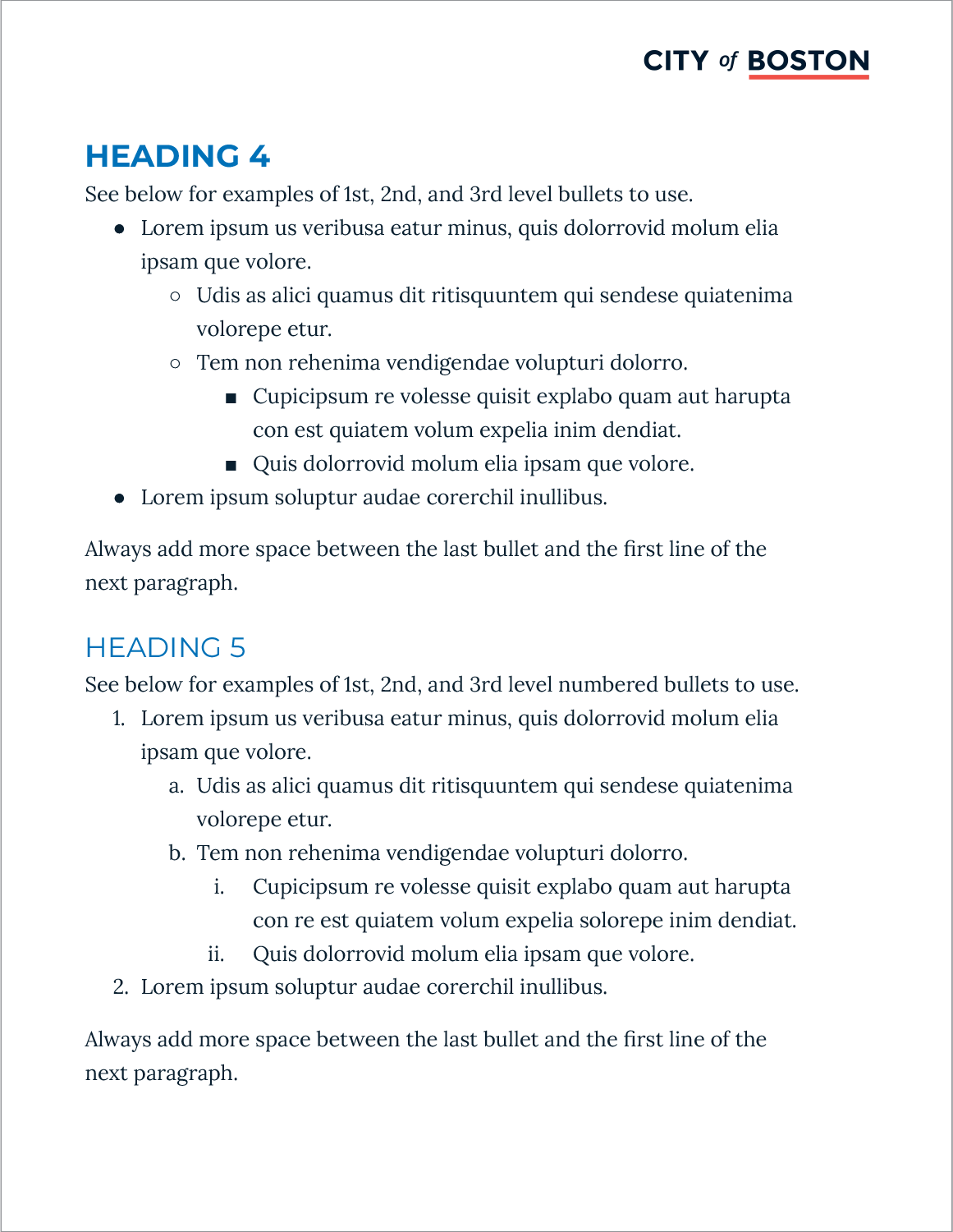Standards include established text styles and typographic elements to create visual interest, enhance content hierarchy, and convey the city’s approachable tone. 3 different table styles are provided to give departments flexibility in presenting their information.