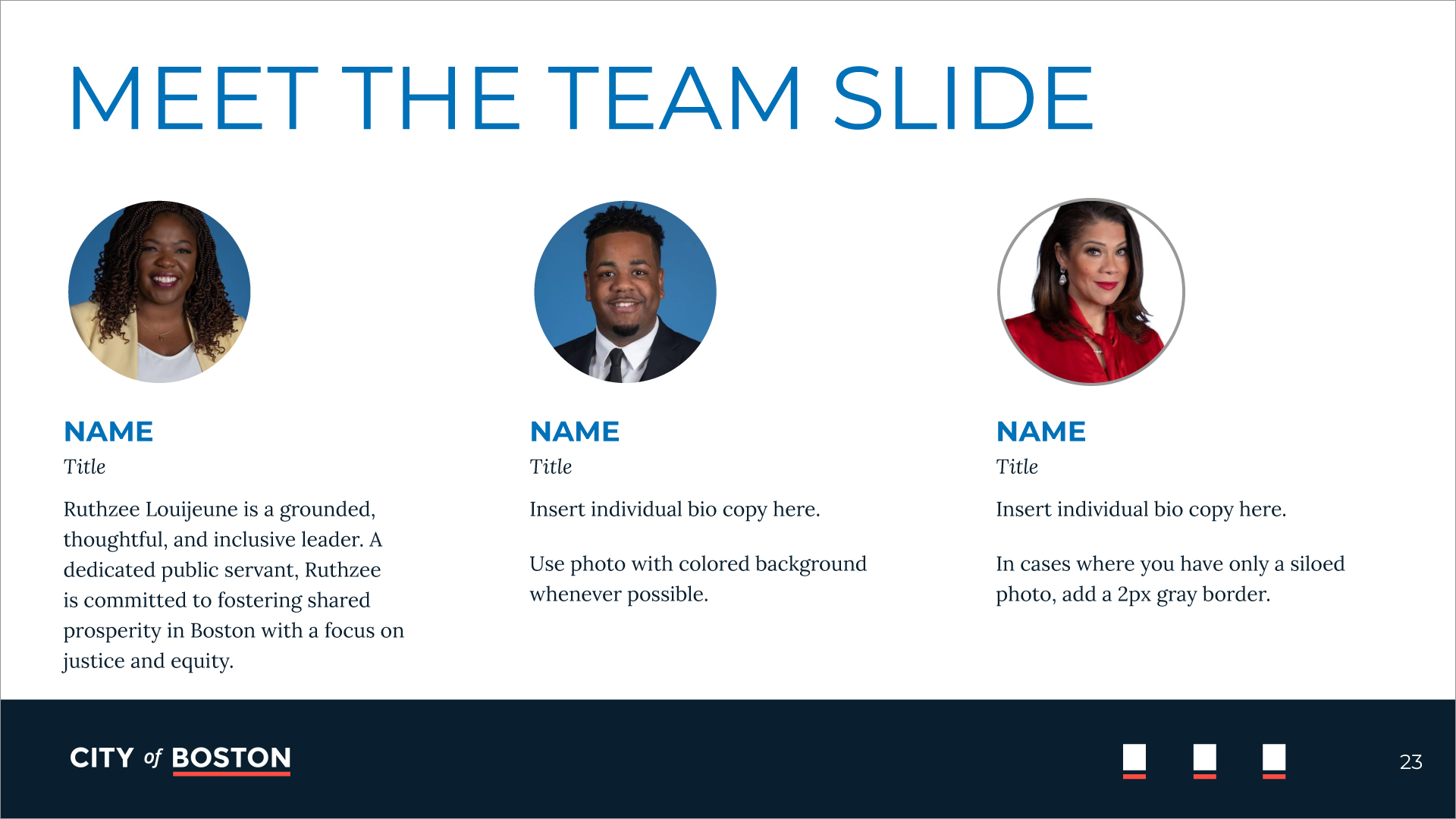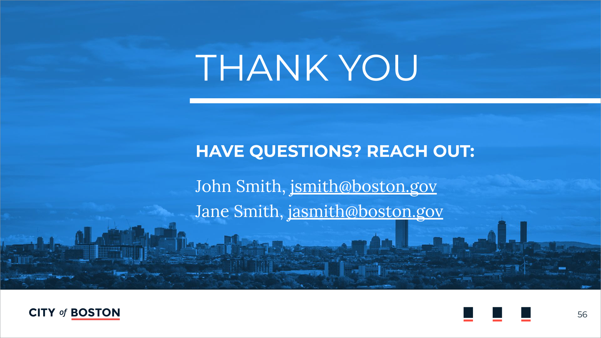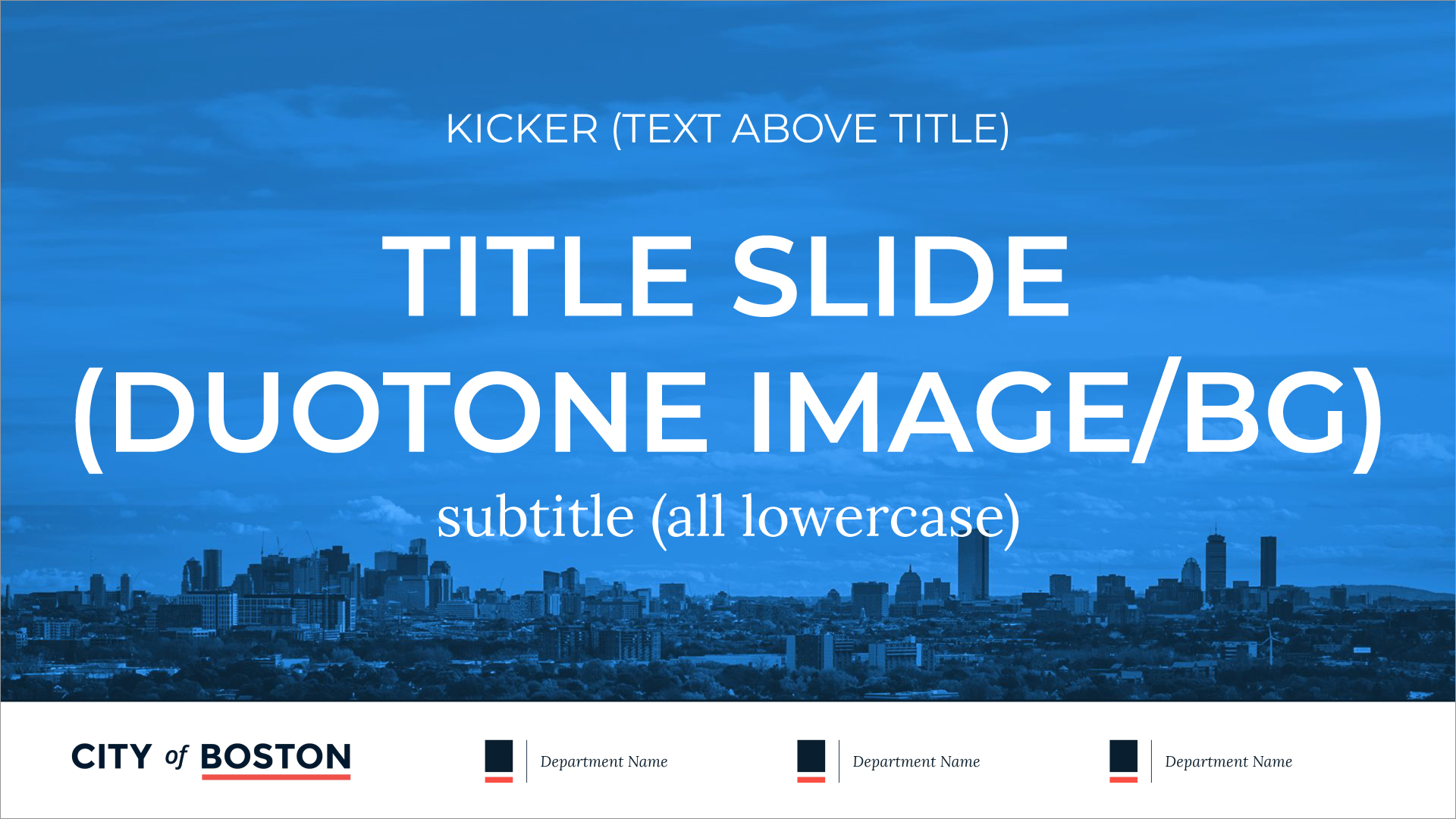 Multiple layout options are offered to ensure brand compliance, creative flexibility, and efficient production. The logo placement is established to highlight that all departments work together as one—as the city of Boston.
