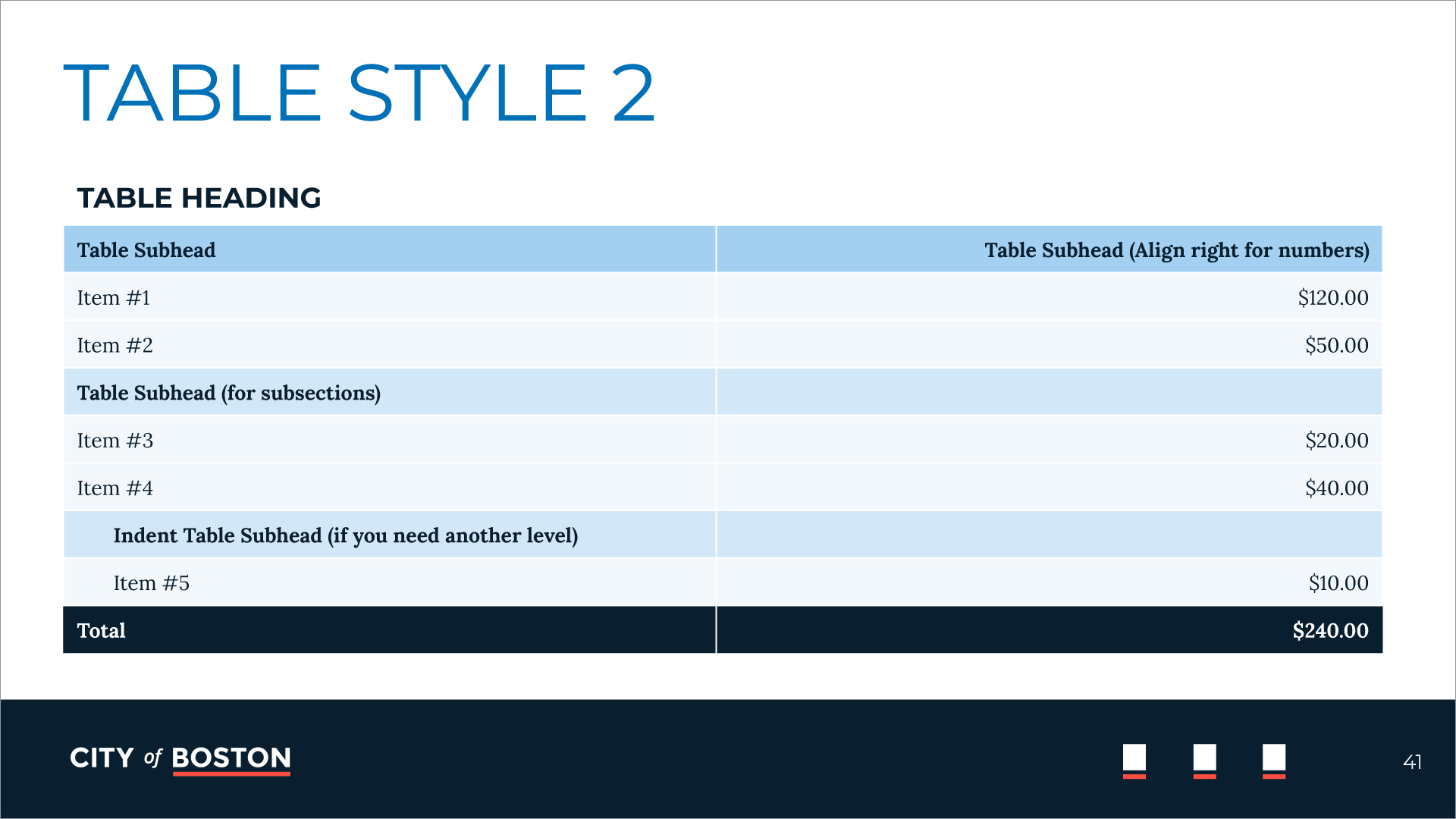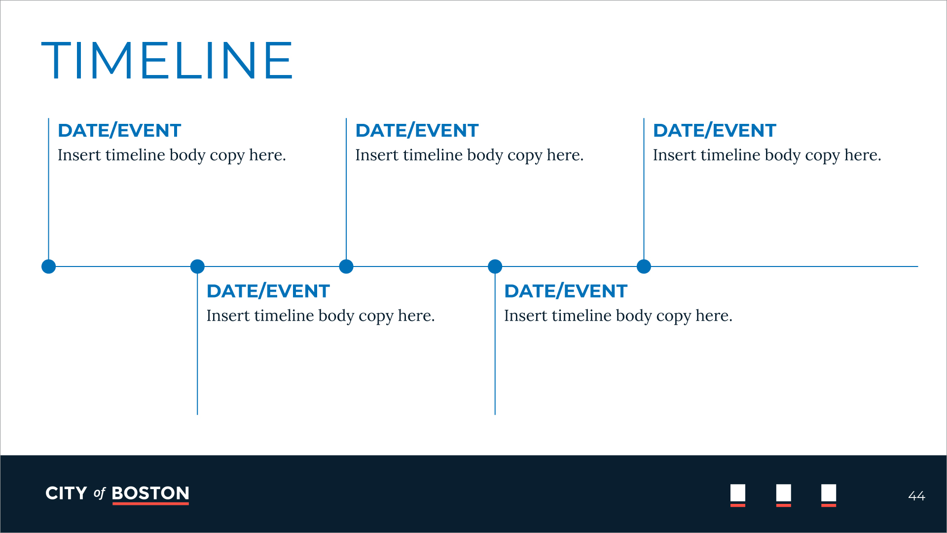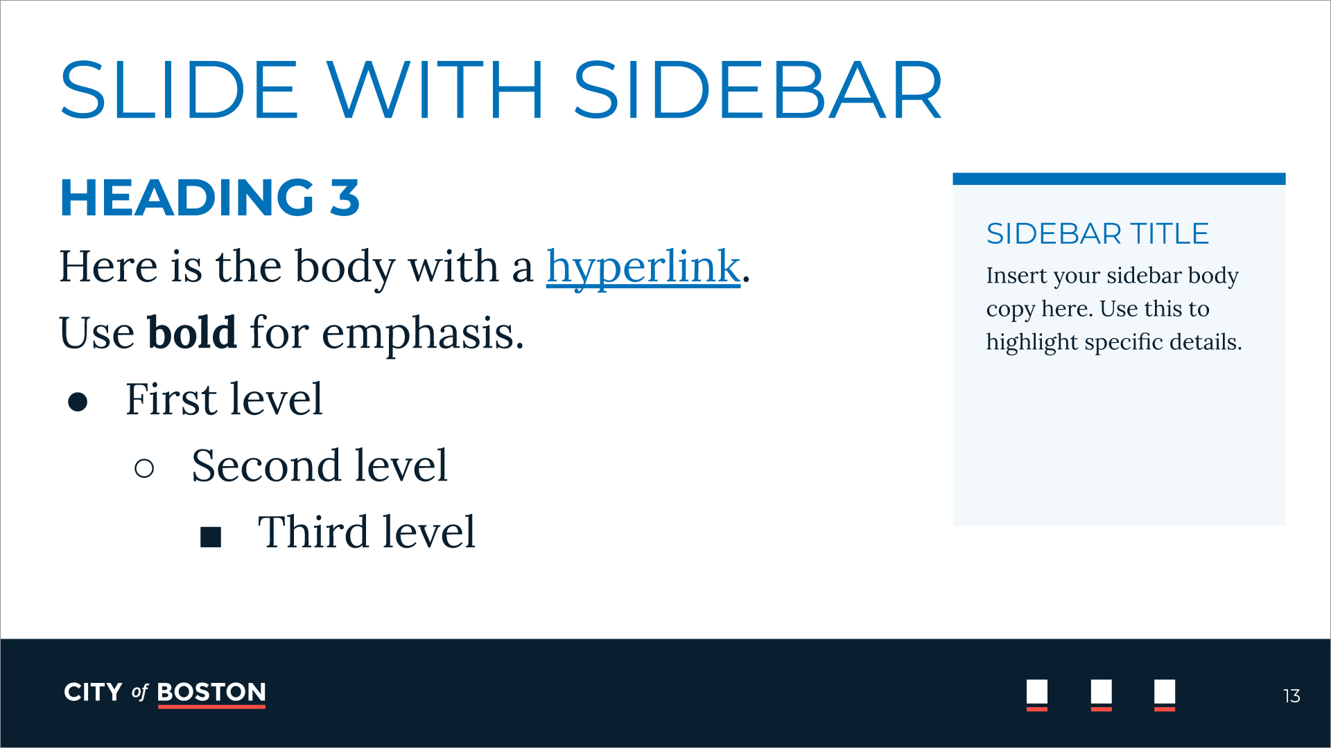 Multiple layout options are offered to ensure brand compliance, creative flexibility, and efficient production. The logo placement is established to highlight that all departments work together as one—as the city of Boston.